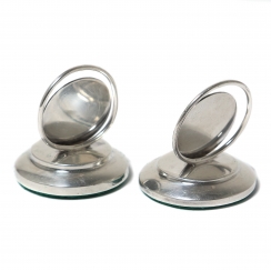 Высота: 4,5 см, диаметр основания: 4,3 см, максимальный диаметр держателя: 3,5 см. Общий вес с утяжелением: 92 грамма, серебро 925 пробы. ========================== Silver stands for price tags, business cards, menus, business cards, 2 pcs.