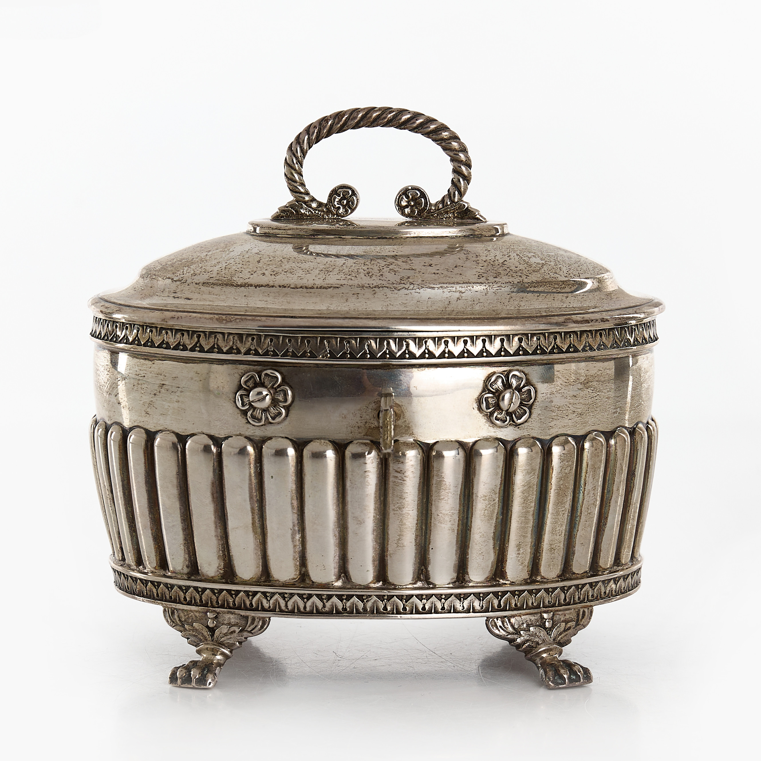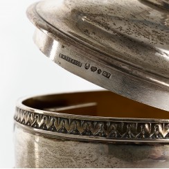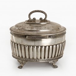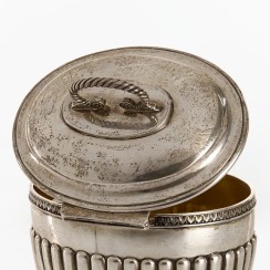 237039 - Сахарница с ключом или шкатулка в густавианском стиле, 413 гр, 830 пр, максимальная высота 12,2 см, длина 12,5 см, ширина 9 см |