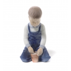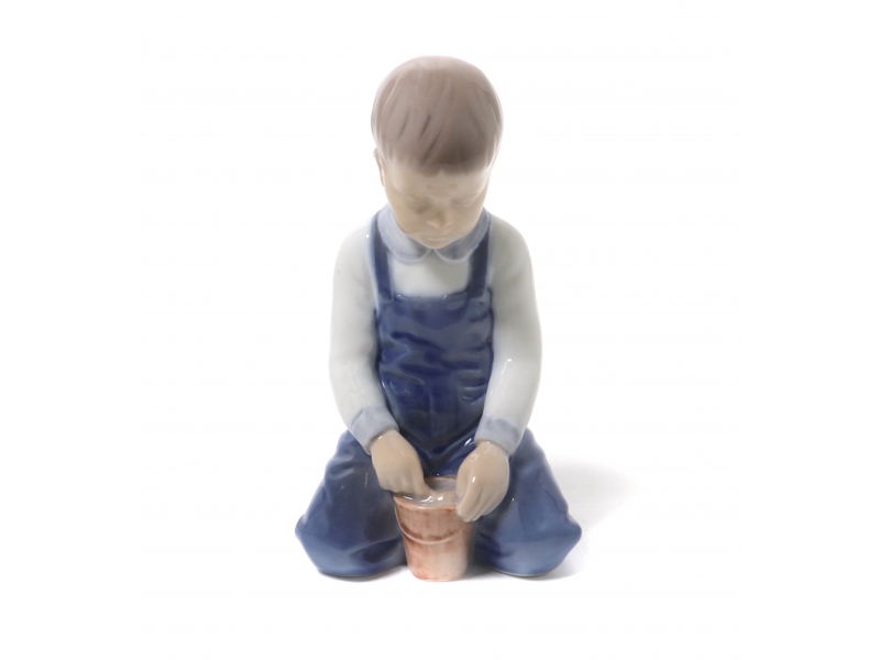 Фарфоровая фигура (статуэтка) "Мальчик с ведерком". Ручная подглазурная роспись.