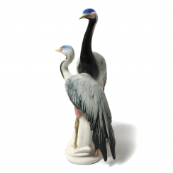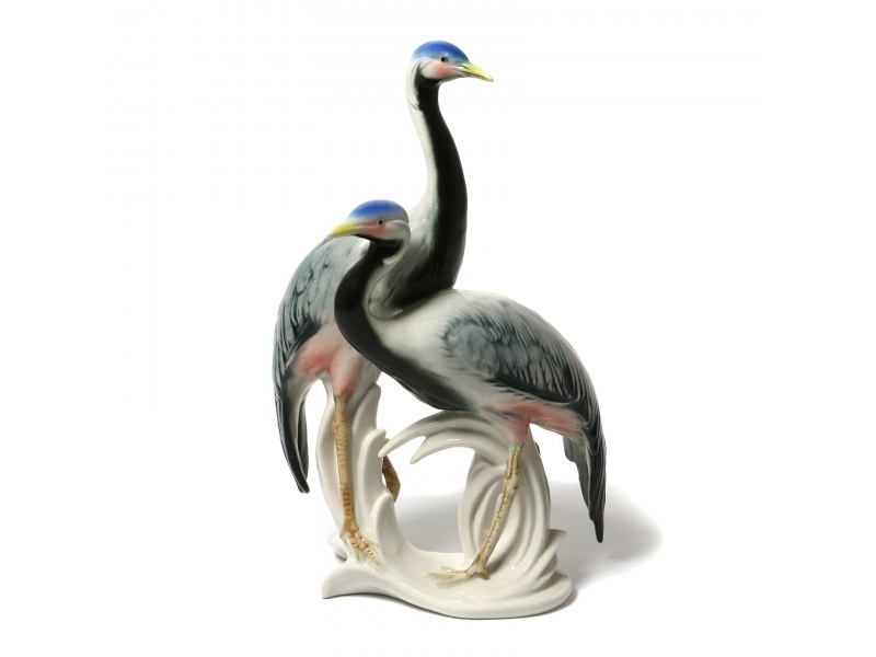 Фарфоровая фигура (статуэтка) "Пара журавлей". Ручная подглазурная роспись.