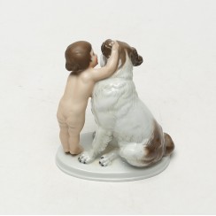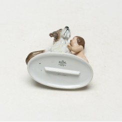 Фарфоровая фигура (статуэтка) "Ребенок с собакой" (Секрет). Ручная подглазурная роспись.