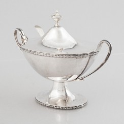 высота по хватку на крышке 16,5 см, высота по край чаши 10,5 см, размеры верха чаши 15,5 х 10 см, размеры основания 10,5 х 7,2 см