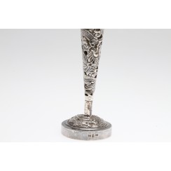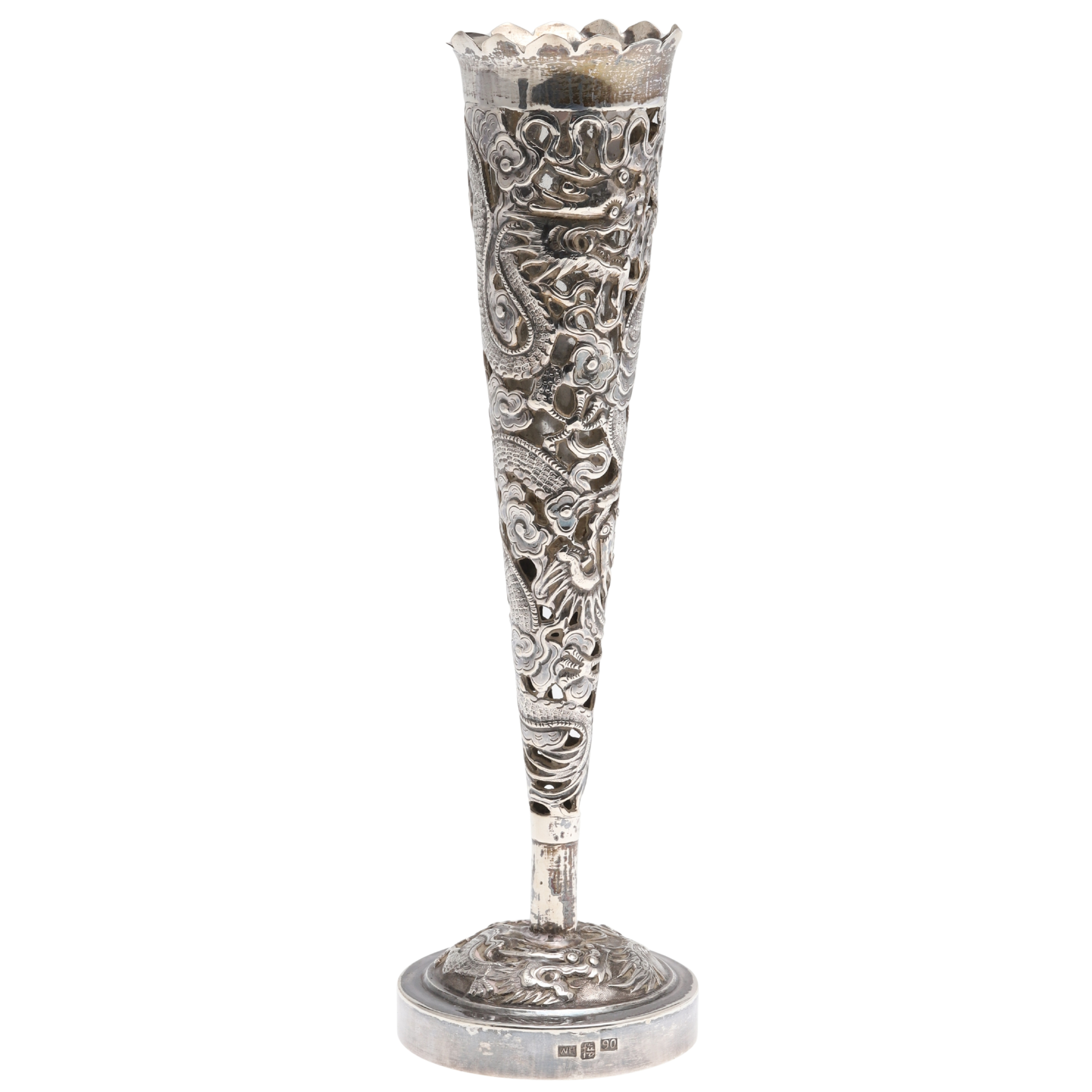 237322 - Ажурная ваза со стеклянной вставкой, Китай, вес без стекла 91 гр, 900 пр, высота 20 см, диаметр верха 4,5 см