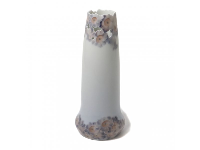 Ваза первого сорта. Без сколов, реставраций и повреждений. =================================== Unique porcelain vase, decorated with relief pansies. Hand-painted underglaze.