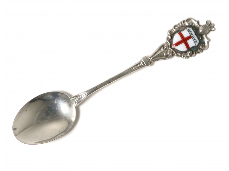 Сувенирная кофейная ложка "Город Генуя (Италия)". Серебро, эмаль.