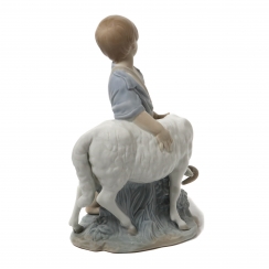 Фарфоровая фигура (статуэтка) "Мальчик с бараном". Ручная подглазурная роспись.