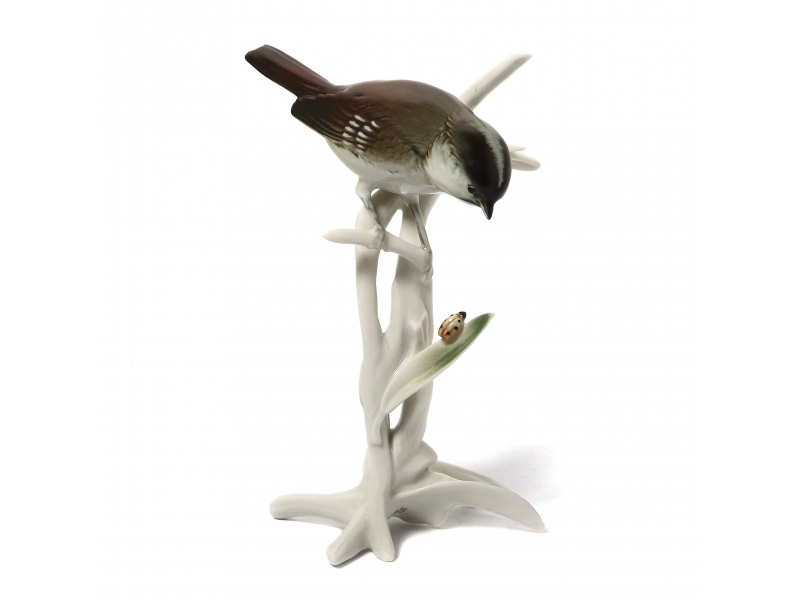 Фарфоровая фигура (статуэтка) "Синица на ветке с божьей коровкой". Ручная подглазурная роспись.