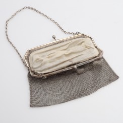 237590 - Театральная серебряная сумка с подкладом, Англия, 203 гр, 925 пр, длина 15 см, высота 13 см, длина цепочки 41 см