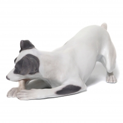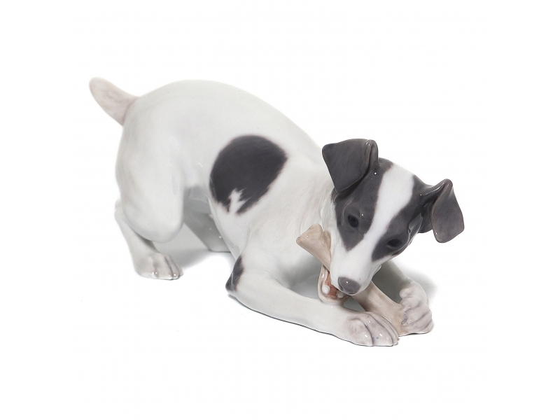 Фарфоровая фигура (статуэтка) "Джек-рассел-терьер с косточкой". Ручная подглазурная роспись.