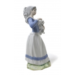 Фарфоровая фигура (статуэтка) "Девочка, кормящая щенка". Ручная подглазурная роспись.