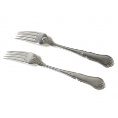Серебряные обеденные вилки, 2 шт. Дизайн "Рита" (Rita). Дания, г. Хорсенс, 1952 год, мастерская Horsens Solvvarefabrik (W&S Sorensen). Длина: 20,5 см. Общий вес: 118 граммов серебра 826 пробы. =============================== Silver dinner forks, 2 pcs. Pattern "Rita".