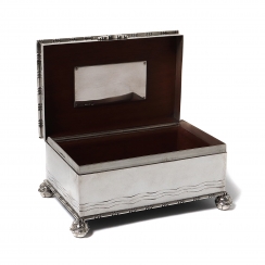 Серебряная коробка (шкатулка) с деревянным дном и внутренней деревянной отделкой.