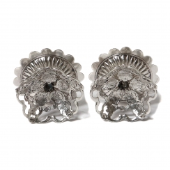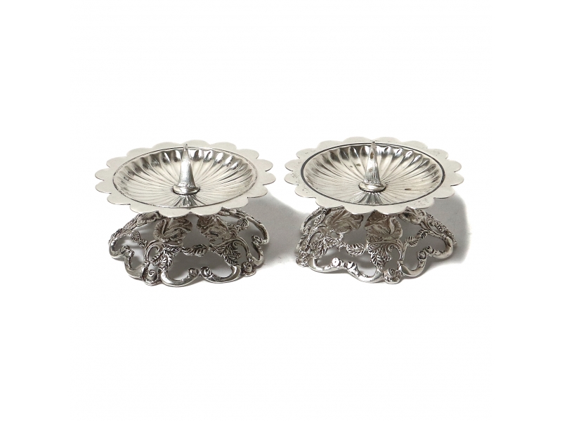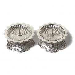 Высота: 2,5 см, диаметр профитки: 5,3 см. Общий вес: 51 грамм серебра 830 пробы. ============================= Silver candlesticks, 2 pcs. Pattern "Rose of Hildesheim".