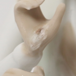 The head is glued on, the flute is missing. The broken fragments are lost.