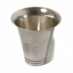 Height: 5 cm, diameter of the top: 5 cm. Volume: 50 ml. Weight: 15 grams of silver 830 fineness.