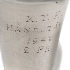 There is engraving "K.T.K. HAND. TÄVL. 1949 2. PR".