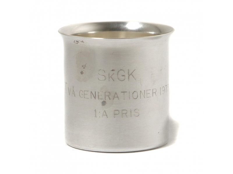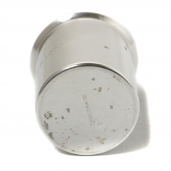 Height: 4.5 cm, diameter the of top: 4.5 cm. Volume: 50 ml. Weight: 33 grams of silver 830 fineness.