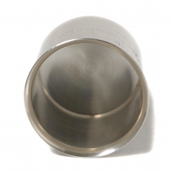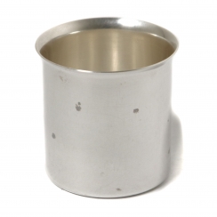 Высота: 4,5 см, диаметр верха: 4,5 см. Объём: 50 мл. Вес: 33 грамма серебра 830 пробы.
