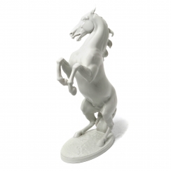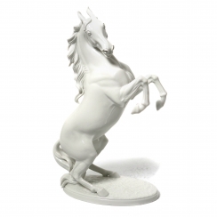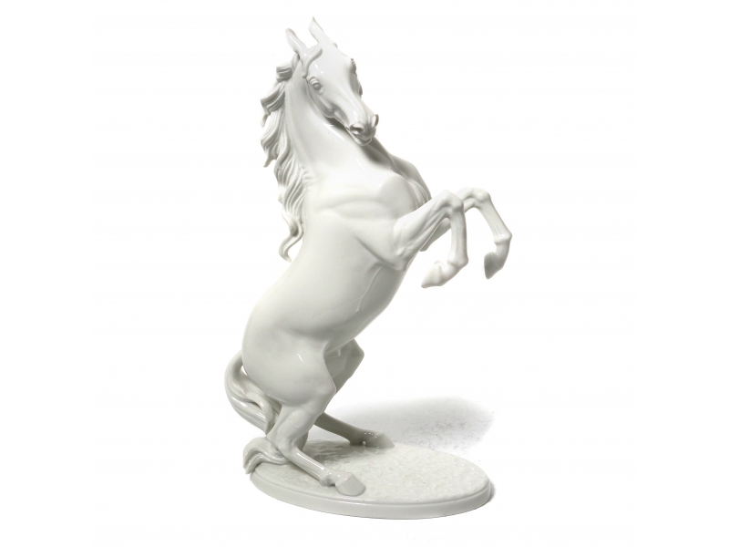 Фарфоровая фигура (статуэтка) "Вздыбленный конь". Нерасписанный белый фарфор. Белая глазурь.
