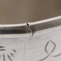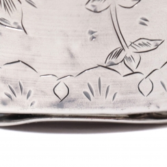 На краю две трещинки, виятины на основании. ============================== Silver beaker, decorated with a floral pattern and a flying swallow.