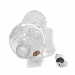 Крышка выполнена из серебра 875 пробы, на ней стоит современное российское трехзначное клеймо - "женская голова в кокошнике, обращенная вправо" с буквой "м" и цифрой "875", где: "женская голова в кокошнике, обращенная вправо" - знак удостоверения; буква "м" - шифр Центральной гос. инспекции пробирного надзора, г. Москва; цифра "875" удостоверяет, что изделие выполнено из серебра 875 пробы. ======================= Crystal decanter with silver lid, decorated with a pommel in the form of a figure of a soldier.
