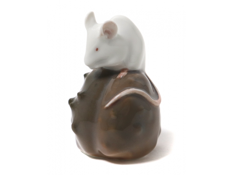 Фарфоровая фигура (статуэтка) "Мышь на коричневом каштане". Ручная подглазурная роспись.