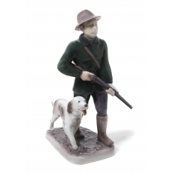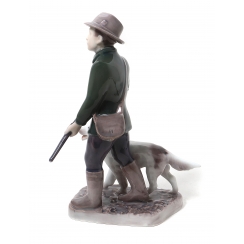 Фарфоровая фигура (статуэтка) "Охотник с собакой". Ручная подглазурная роспись.