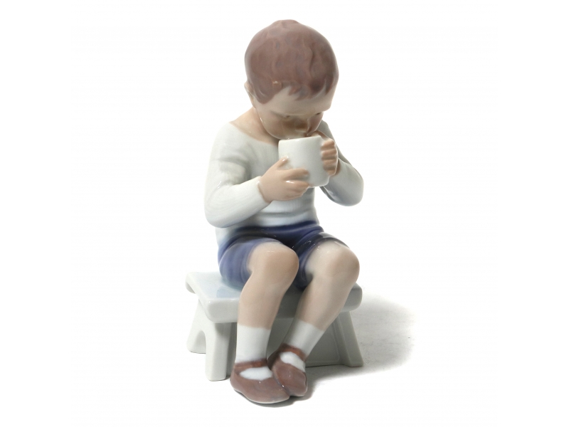 Фигура производилась также после объединения фабрик Royal Copenhagen и Bing & Grondahl (1985-1989) под брендом Royal Copenhagen, номер модели: 418. =============================== Porcelain figurine "Victor" (Boy drinking milk). Hand-painted underglaze.