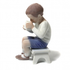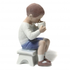 Фарфоровая фигура (статуэтка) "Виктор" (Мальчик, пьющий молоко). Ручная подглазурная роспись.
