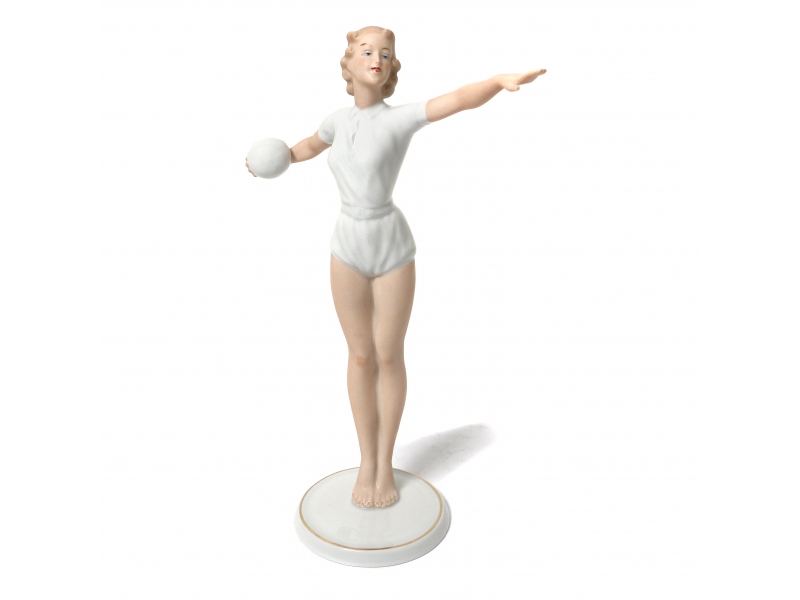 Фарфоровая фигура (статуэтка) "Гимнастка с мячом". Ручная роспись.