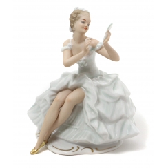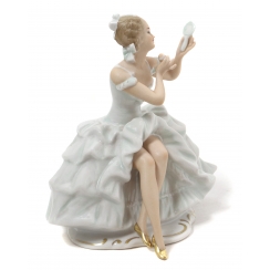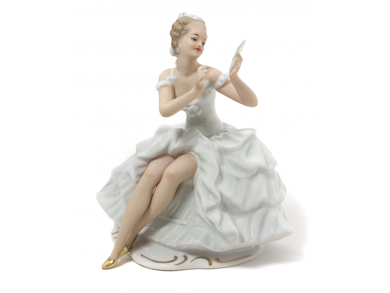 Фарфоровая фигура (статуэтка) "Балерина с зеркалом". Ручная роспись.