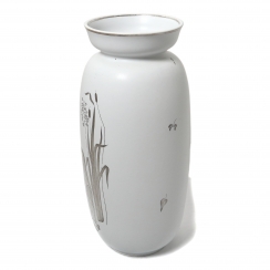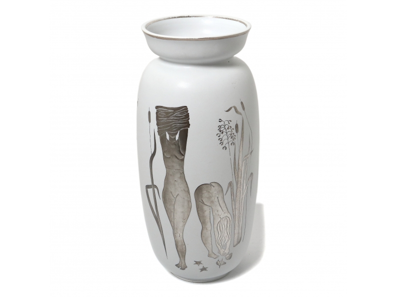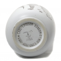 Мелкие царапины на тулове. С памятной надписью на дне вазы "В честь 50-летия (1907–1957) связи Карла Ларссона с магазином Konsum Fenix в городе Лунде." ============================ Ceramic vase from the series "Grazia". Decorated with interior motion picture made of silver.