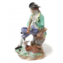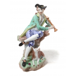 Фарфоровая фигура (статуэтка) "Юноша с флейтой и собакой у ног". Ручная роспись.