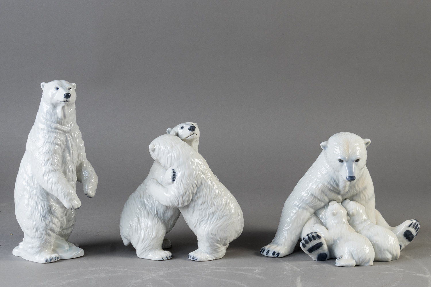 Фигура произведена после объединения фабрик Royal Copenhagen и Bing & Grondahl (1985-1989). ================================= Porcelain figurine "Polar Bear with Cubs" from the series "Motherly Love". Hand-painted underglaze.