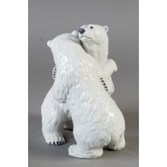 Фигура произведена после объединения фабрик Royal Copenhagen и Bing & Grondahl (1985-1989). ============================== Porcelain figurine "Polar Bears Hugging". Hand-painted underglaze.