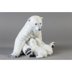 263973 - Фарфоровая фигура Белые медведи. Royal CopenhagenФарфоровая фигура (статуэтка) "Белая медведица с двумя медвежатами" из серии "Материнская любовь". Ручная подглазурная роспись.