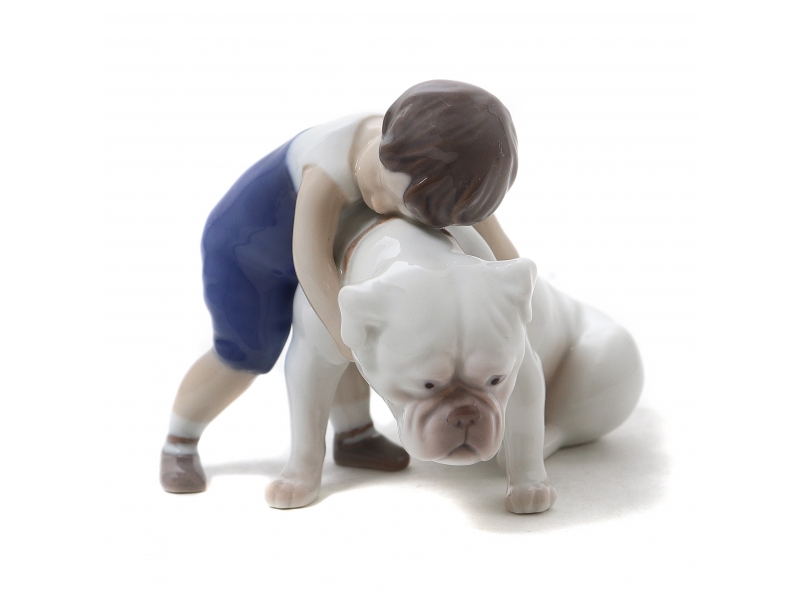 220799 - Фарфоровая фигура "Два друга". Bing & GrondahlФарфоровая фигура (статуэтка) "Два друга" (Мальчик с собакой). Ручная подглазурная роспись.