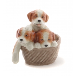 230893 - Фарфоровая фигура Щенки в корзине. Royal CopenhagenФарфоровая фигура (статуэтка) "Щенки дворняжки в корзине" из коллекции Мини щенки. Ручная подглазурная роспись.