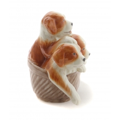 Статуэтка первого сорта. Без сколов, повреждений и без реставраций. ============================== Porcelain figurine "Pooch puppies in a basket" from the Mini Puppy Collection. Hand-painted underglaze.