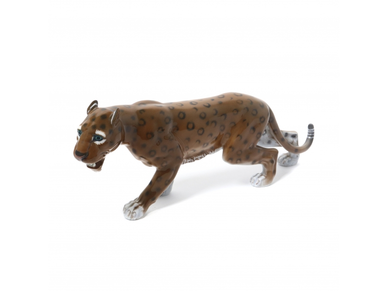 Фарфоровая фигура (статуэтка) "Пантера" (Леопард). Ручная подглазурная роспись.