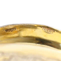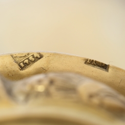 Russian assay marks of the 18th century: "МБ" - hallmark with the initials of assay master Mikhail Borovshchikov (worked since1755 to 1768). Mark with George the Victorious - a symbol of the city of Moscow.