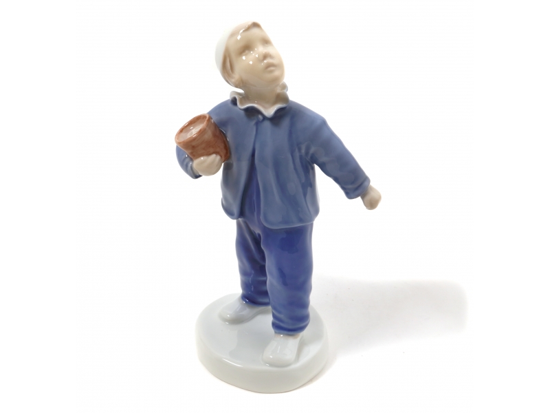 Фарфоровая фигура (статуэтка) "Кто зовет?" (Мальчик с ведерком). Ручная подглазурная роспись.