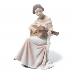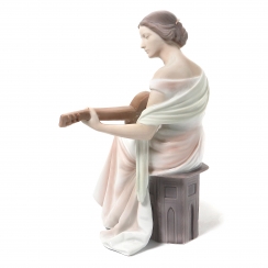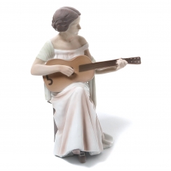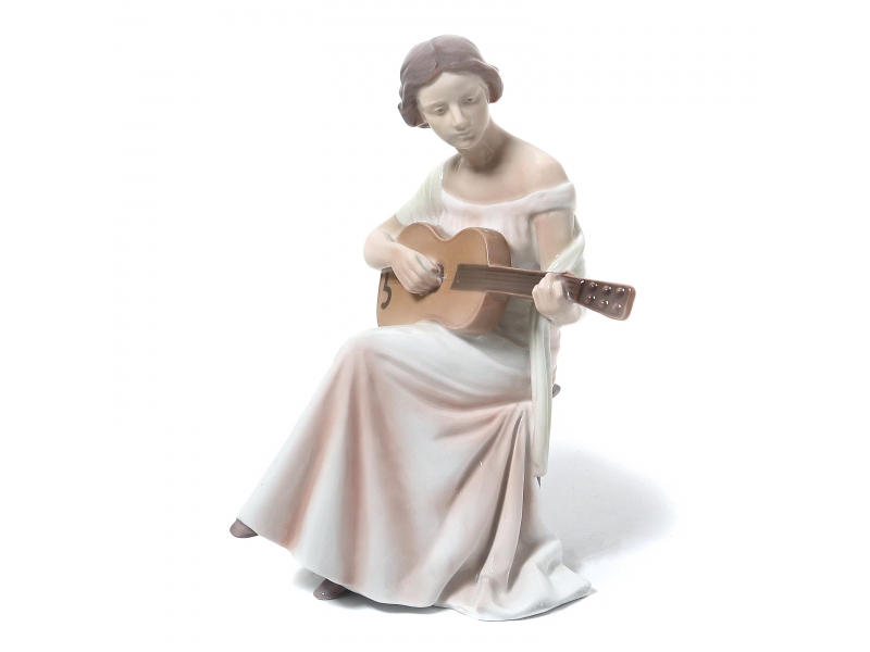Фигура производилась также после объединения фабрик Royal Copenhagen и Bing & Grondahl (1985-1989) под брендом Royal Copenhagen, номер модели: 416. ============================= Porcelain figurine "Woman with guitar". Hand-painted underglaze.