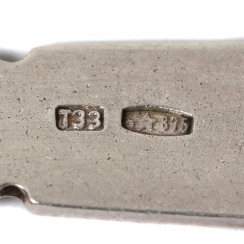 The triple Soviet- Russian hallmark, 1958-1993 – "sickle and hammer inside a five-pointed star" with letter "Э" and number "875", where: "sickle and hammer inside a five-pointed star" – the national hallmark; letter "Э" - code of the Tallinn Assaying Office. "875" – the fineness mark.