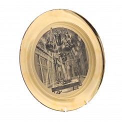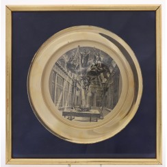 243004 - Серебряная тарелка с иллюстрацией (фронтисписом) из "Конституции вольных каменщиков" 1784 года издания. В раме со стеклом. Англия, г. Бирмингем, 1977 год.