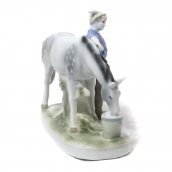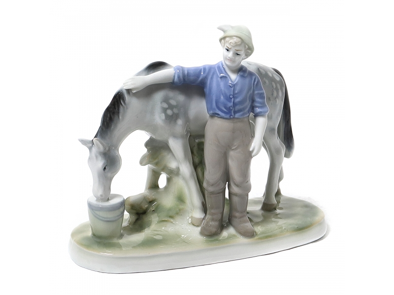 Без сколов, повреждений и без реставраций. ============================= Porcelain figurine "Young man with a horse". Hand-painted underglaze.