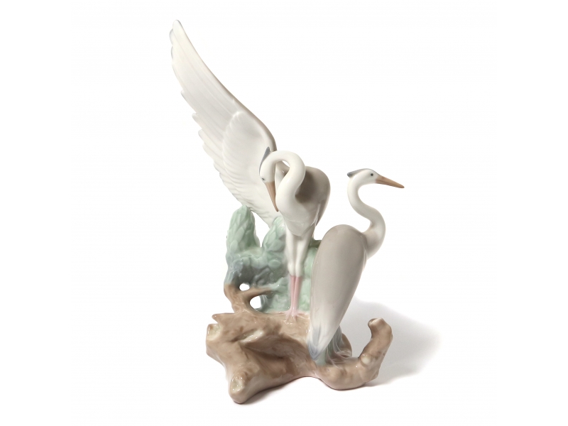 Фарфоровая фигура (статуэтка) "Отдыхающие цапли". Ручная подглазурная роспись.