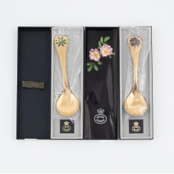 221638 - Серебряная годовая десертная ложка. Georg Jensen, 1976 годаGeorg Jensen, Дания: Коллекционная годовая десертная ложка "Шиповник" 1976 года. Серебро, позолота, эмаль.