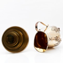 Высота: 12,4 см, диаметр верха: 10 см. Объём: 450 мл. Вес: 139 грамм серебра 830 пробы.