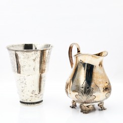 Height: 12.4 cm, diameter of the top: 10 cm. Volume: 450 ml. Weight: 139 grams of silver 830 fineness.